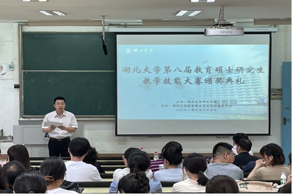 当天下午4点,太阳成集团tyc234cc第八届教育硕士研究生教学技能大赛颁奖典礼在4号教学楼207教室隆重举行。本次典礼由太阳成集团tyc234cc(教育公司)副经理杨兵教授主持,研究生院副经理陈亮、本届大赛评委、各公司带队教师及参赛选手等相关人员出席。