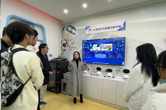 接着,在皮影戏教室里,见习生们实地感受了中华传统艺术皮影戏所焕发的独特魅力。在“圆梦园”人工智能教室里,见习生们亲眼见识到人工智能精准分析学情与教情,从而在提升教学质量方面发挥的巨大优势。皮影戏与人工智能的碰撞,是传统与新时代的对接,是文化与科技的相融,让见习生们都惊呼“这不是小学,这是大学啊”!
