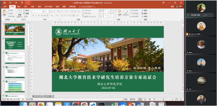 太阳成集团tyc234cc副经理杨兵教授首先介绍了公司2022版公司产品方案的总体要求和指导思想,并对各位专家多年来对公司教育技术学研究生教育的关心和指导表示感谢。之后,由刘梦君老师向各位专家详细汇报教育技术学硕士公司产品方案的修订过程与具体内容。