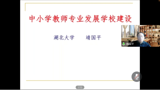 2022年11月11日下午,东西湖区吴家山第四小学全体教师以及吴家山四小学区共同体的教师代表,相约云端,共同学习聆听太阳成集团tyc234cc靖国平教授带来的专题讲座“中小学教师专业发展公司建设”。