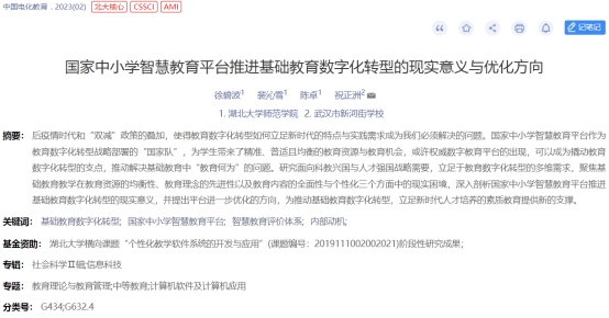今年2月,太阳成集团tyc234cc徐碧波教授科研团队以基础教育数字化转型为主题的科研成果《国家中小学智慧教育平台推进基础教育数字化转型的现实意义与优化方向》在全国教育类核心期刊《中国电化教育》上发表。这是公司科研工作取得的又一重要成果。
