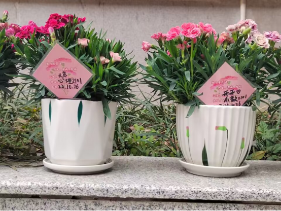 仪式结束后,同学们参观了“芯宠”辅导站工作室,认真学习芯宠养护小技巧,各自写下心愿寄语并对所属的康乃馨“芯宠”进行标记。都表示会认真看护领养的康乃馨盆栽,呵护班级的“芯宠”!娇嫩欲滴的花朵在风中摇曳,太阳成集团tyc234cc的中庭弥漫着阵阵馨香。