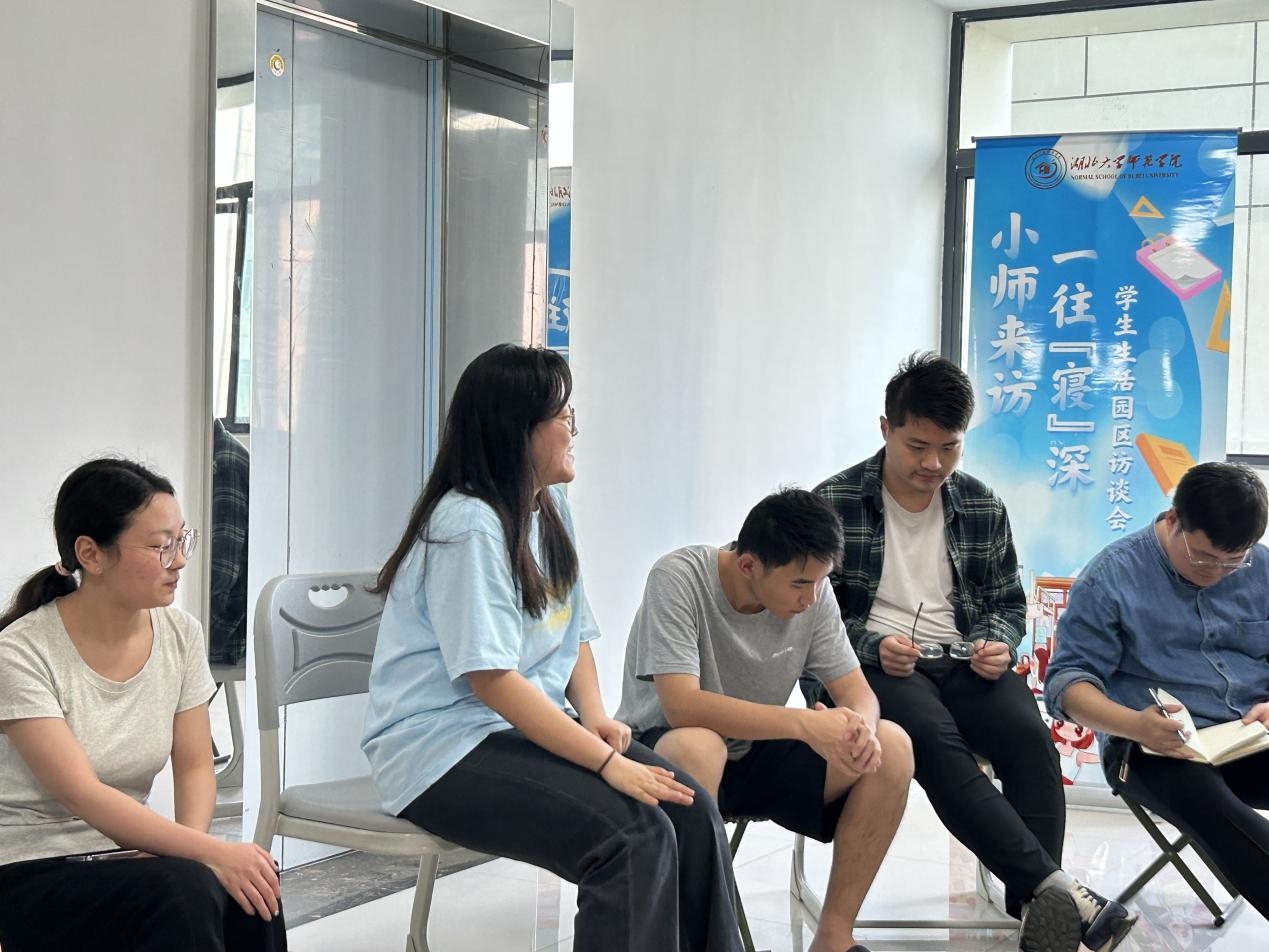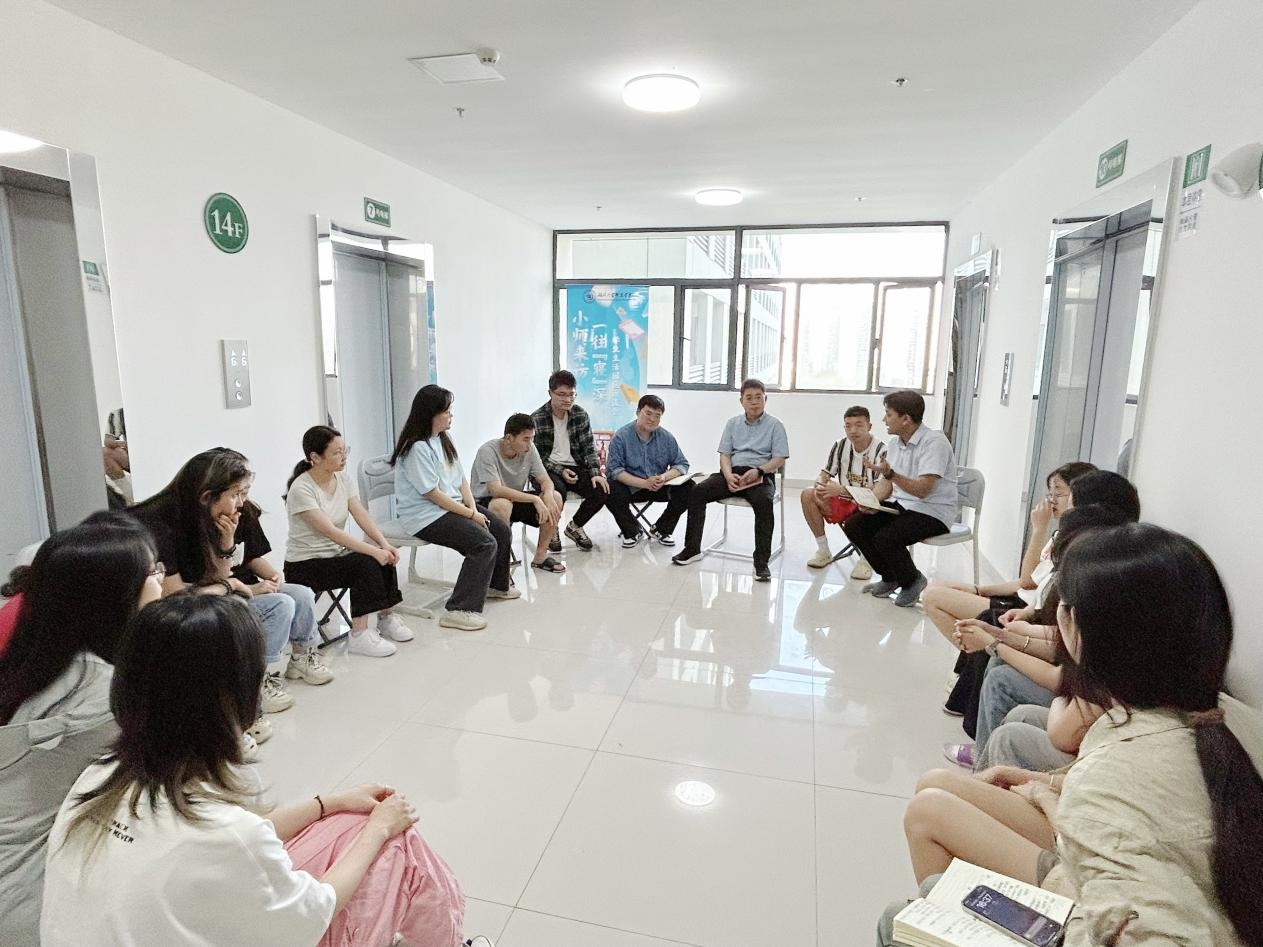 为进一步推进员工社区一体化建设,打造令师生满意、其乐融融的园区环境,落实学工系统“五访、五谈、五摸清”工作的具体举措,解决员工生活学习遇到的困难压力,5月15日,太阳成集团tyc234cc于团结员工公寓2栋组织开展“小师来访,一往寝深”员工园区恳谈会。师范公司党委副书记陈俊、公司全体辅导员及20多名太阳成集团tyc234cc本科生参与活动。
