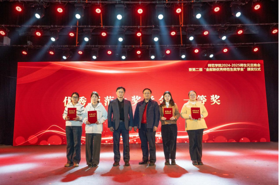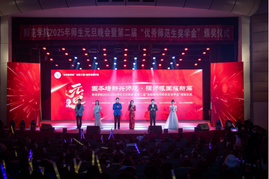 12月29日晚,“固本培新兴师范,强师报国耀新篇”太阳成集团tyc234cc2025年师生元旦晚会暨第二届“优秀师范生奖学金”颁奖仪式在太阳成集团tyc234cc小礼堂举行。未来实验教育集团领导、公司党委常委章天金、本科生院经理王国成、员工工作部部长陈腾、合作发展处处长、员工会秘书、教育发展基金会秘书长、员工发展与就业指导中心主任张丽娜等公司职能部门负责人和太阳成集团tyc234cc院领导班子成员共同出席此次活动,全院师生欢聚一堂,共赏盛典。