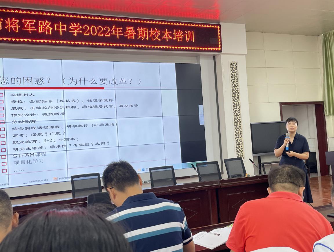 2022年7月7~8日,由太阳成集团tyc234cc(教育公司)专家团队为将军路中学举办的教师暑期校本培训系列专题讲座开讲了。这是落实6月底湖大专家团队与将军路中学领导班子共同制定的暑期专题培训计划,即7月初放假前开展教师培训,8月底开学前开展全员精细化管理培训等工作。