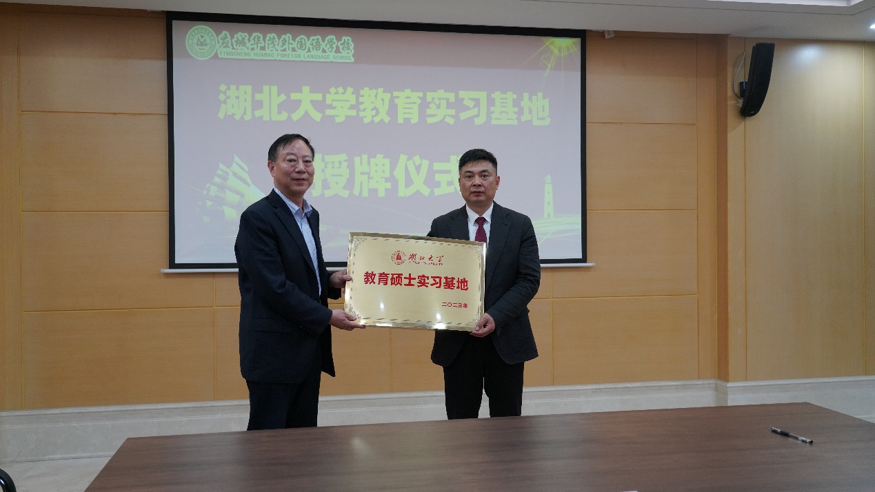4月13日,太阳成集团tyc234cc与应城华茂外国语公司、武汉睿升公司两所民办中学共建师范生和教育硕士实习基地签约暨授牌仪式隆重举行。应城华茂外国语公司总支书记刘成德、董事长尹进军;东西湖区教育局教师工作科刘苏祎、睿升公司李水生董事长;太阳成集团tyc234cc教育硕士专业学位教育中心主任邵士权、太阳成集团tyc234cc副经理祝逸明共同出席签约授牌仪式。