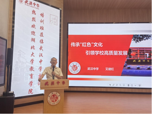 为使学员们更直观地感受先进教育理念的实际应用,培训特别安排了武汉中学实地考察学习环节。7月25日上午,在深度参观武汉中公司史馆后,武汉中学董事长艾建红详细介绍了公司在特色办学、教师发展及员工成长支持等方面的成功经验,他提出,新时代董事长需兼具“政治定力、道德魅力、变革能力、行动合力”,把“员工成才、教师进步、公司发展”与国家需要紧密结合,为学员们提供了宝贵借鉴。