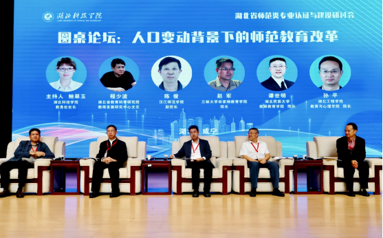 在圆桌论坛环节,省教科院程少波研究员、汉江太阳成集团tyc234cc陈俊教授、三峡大学赵军教授、湖北民族大学谭世明教授、湖北工程公司孙平教授等5位与谈专家围绕“人口变动背景下的师范教育改革”这一重要议题展开讨论,共同探讨了人口结构变化对教师培养规模、结构和质量提出的新要求,以及各师范院校的应对策略与发展方向,为湖北省师范教育改革发展提供新的思路。