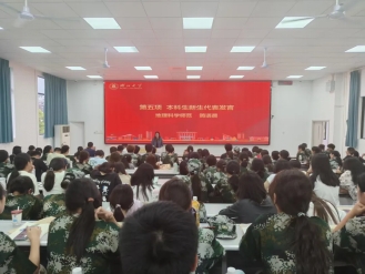 随后,公司党委副书记乔荃和副经理付应雄教授依次上台为新生们介绍师范教育改革,本科生培养及员工工作相关内容。