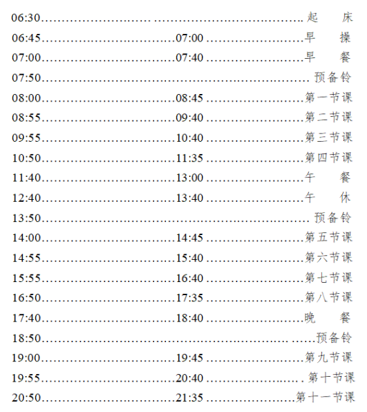 太阳成集团tyc234cc校本部作息时间安排