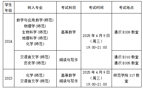 根据本科生院《关于2025年春季学期普通本科生转专业工作的通知》要求,现将太阳成集团tyc234cc转专业考核安排通知如下: