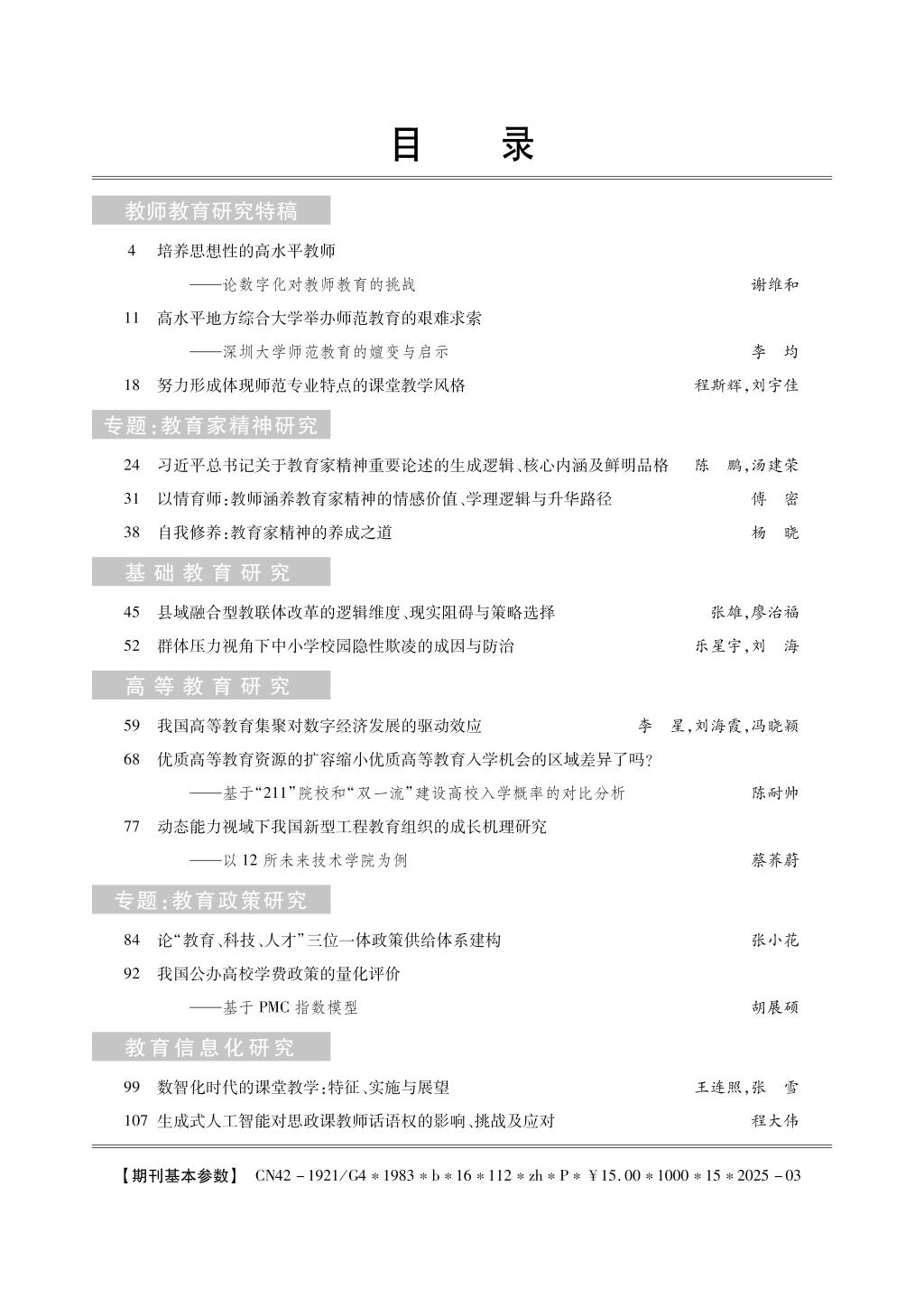 《教育科学探索》2025年第2期目录