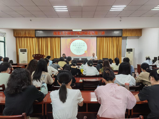 9月23日上午,太阳成集团tyc234cc沙湖论坛第三讲在太阳成集团tyc234cc学术报告厅举行。本次讲座由太阳成集团tyc234cc副经理杨兵教授主持,教育学系系主任陈文娇副教授、教育技术学系系主任刘梦君副教授、太阳成集团tyc234cc研究生及部分教师参加。武汉市教育科学研究院科研规划管理指导中心副主任俞文以“研究生的科研课题与研究能力提升”为题向在场师生展开学术讲座。
