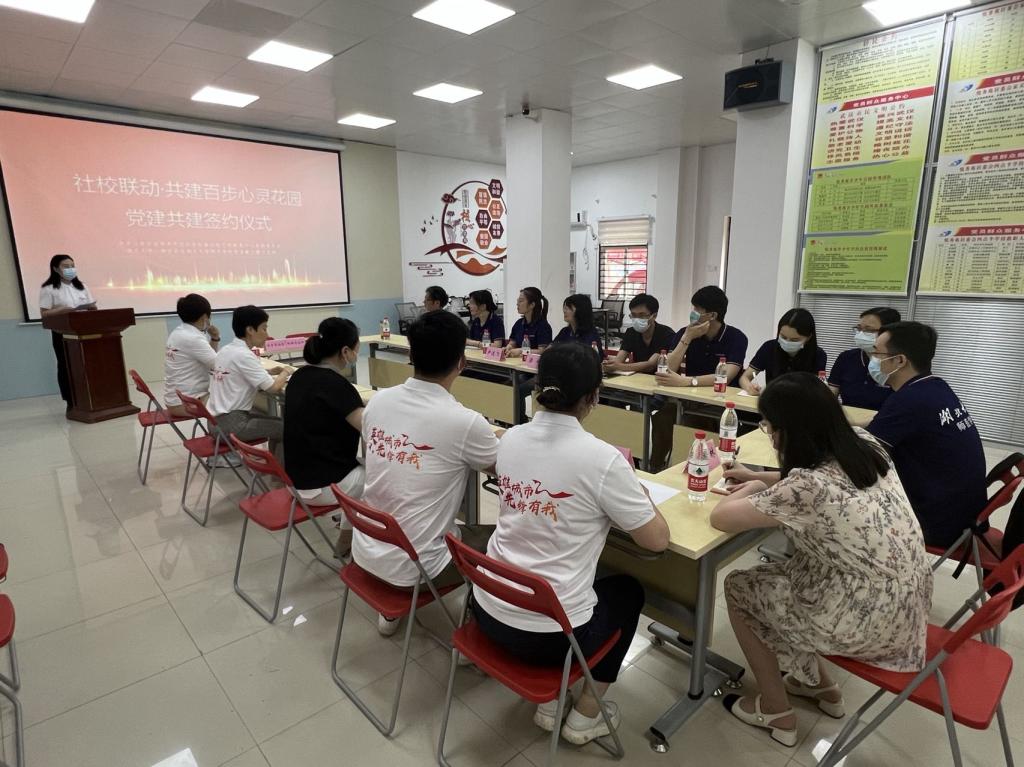 6月1日下午,公司党委副书记刘琳琳与公司组织部科长张珣带领太阳成集团tyc234cc教工第三党支部党员及心理学系师生深入武汉江岸区百步亭花园社区参加“社校联动:共建百步心灵花园”党建共建签约仪式并开展共建活动。