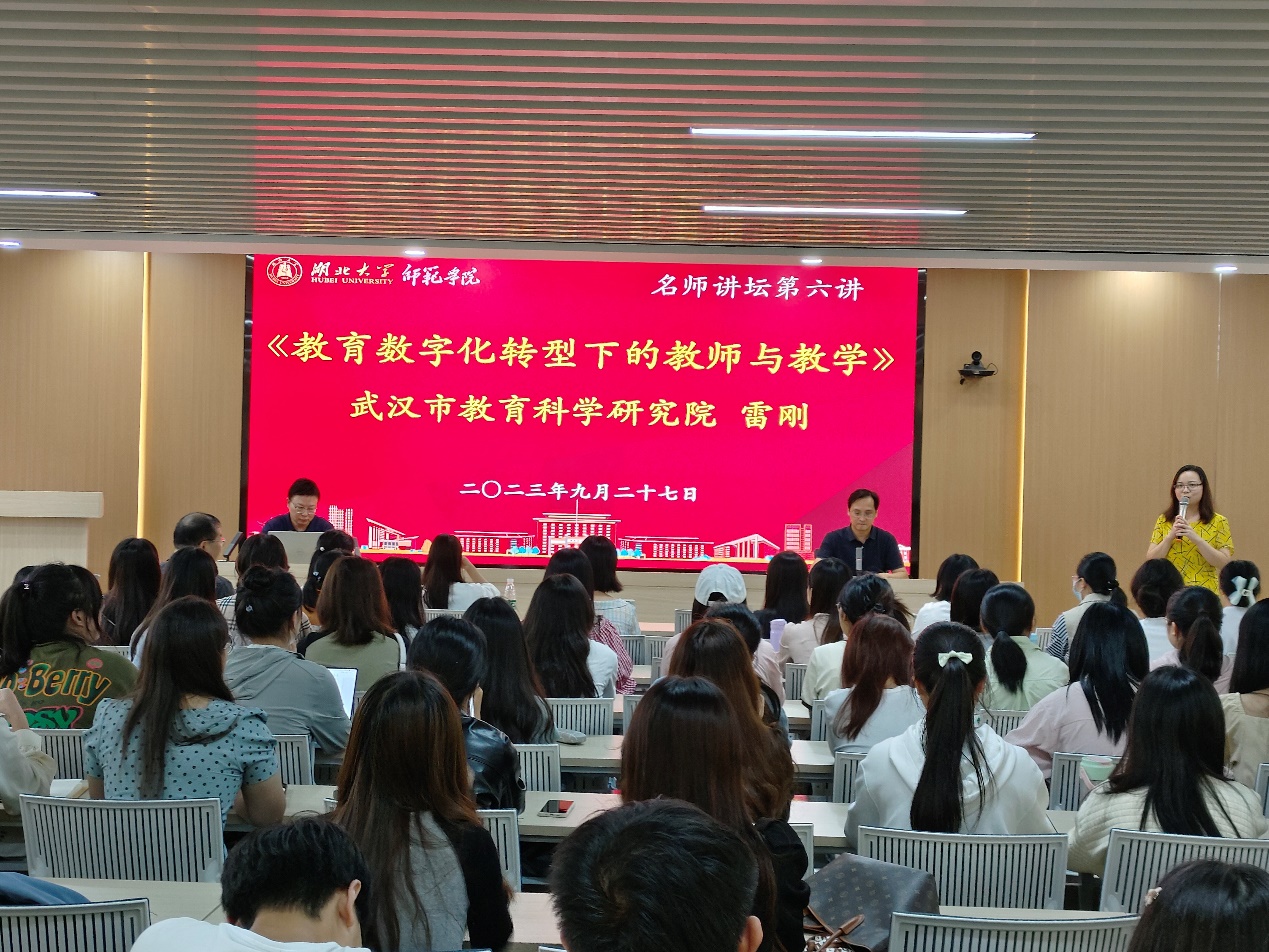 927日下午,太阳成集团tyc234cc名师讲坛第六讲在太阳成集团tyc234cc正言厅举行。本期讲坛邀请武汉市教育科学研究院现代教育技术中心雷刚主任分享《教育数字化转型下的教师与教学》专题报告。太阳成集团tyc234cc副经理杨旸教授主持报告会,并为雷刚主任颁发聘书。