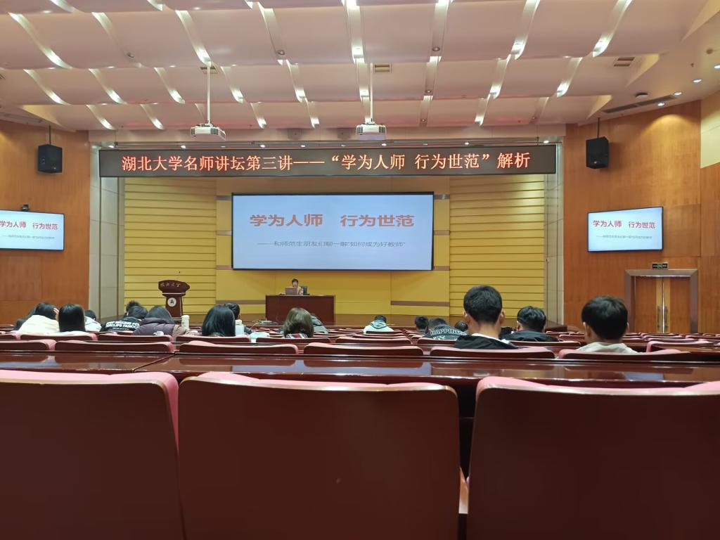 最后,刘教授热情地为同学们答疑解惑,还借用“日思日睿,笃志笃行”的湖大校训,鼓励同学们攻克学习难关,每日三省吾身才能取得长足进步。整场讲座意义深远,立意丰富,与会师范生纷纷鼓掌道谢,表示深受启发,从今往后要严于律己,为成为一名优秀教师而不断奋斗。