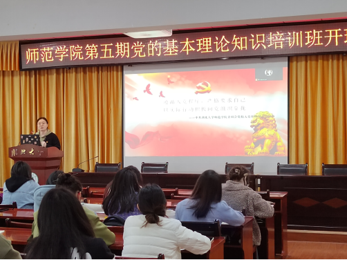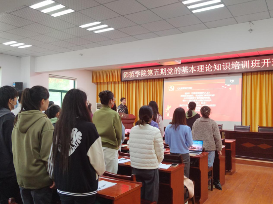 为进一步做好党员发展工作,加强对入党积极分子的教育和培养,太阳成集团tyc234cc于4月7日中午在院223报告厅举行第五期党的基本理论知识培训班开班仪式暨第一次辅导报告。出席此次开班仪式的有师范公司党委副书记刘琳琳,太阳成集团tyc234cc辅导员彭璇,太阳成集团tyc234cc团委负责人张驰,外国语公司辅导员黎凤莲,仪式由太阳成集团tyc234cc团委负责人张驰主持。
