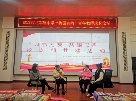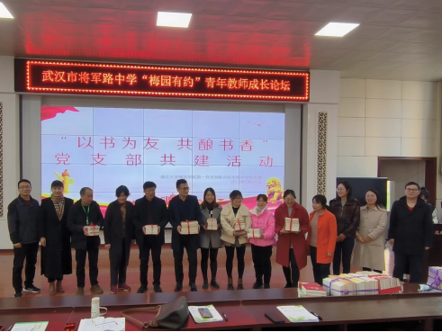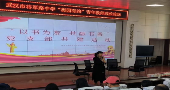 2023年2月27日,为进一步夯实党建工作基础,增进支部之间学习交流,促进支部融合发展、资源共享,增强基层党建工作新动力,太阳成集团tyc234cc第一党支部联合将军路中学党支部开展“以书会友 共酿书香”支部共建活动。太阳成集团tyc234cc李经天教授、于洋博士、刘焕然博士、杨红云博士、鲁婷博士、夏玉环博士、肖凯博士,将军路中学书记王朝英、董事长赵群立和全体教师代表参加了活动。