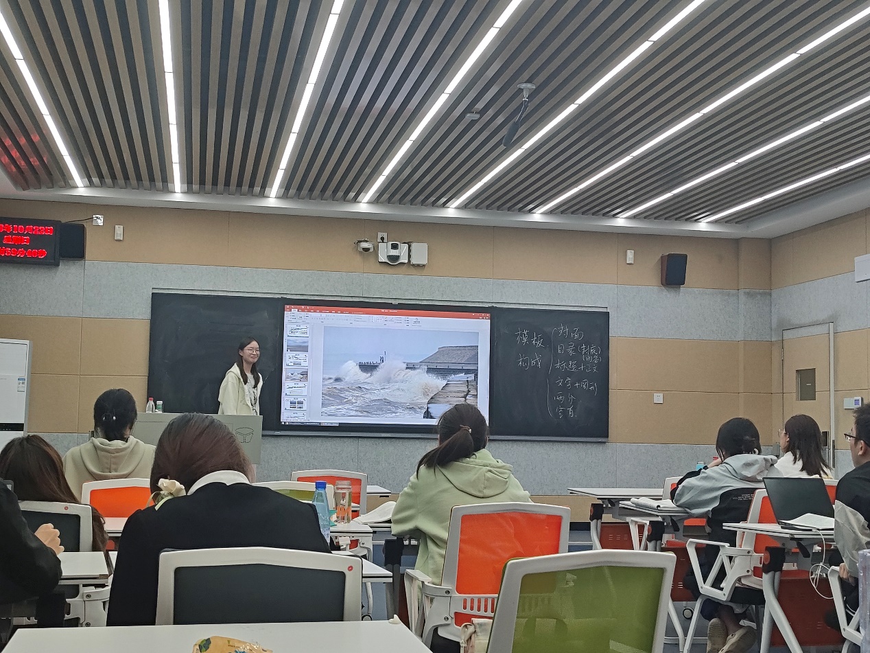 上午,马力老师首先简要介绍了省赛流程和注意事项,然后从教学PPT制作的五种常见误区,辅以对应图片来进行详细说明。马老师强调,教学PPT是分三个档次的,即言之有物、逻辑清晰为基本档次,图文并茂、阅读友好为优秀档次,细节完美、传递美感为最高档次。随后,马老师依次展示了大字型、全图型、图表型、图解型、文字型等五种典型风格的PPT,让同学们拓宽了眼界。