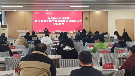 公司党委书记卢轶婷传达了公司寒假、春节前安全稳定工作会议精神,布置了意识形态安全、紧急信息报送、员工离校、实验室办公室安全排查、假期员工管理及公司假期值班等工作。她要求全院上下充分认识到维护各领域安全稳定的极端重要性,提高安全风险防患意识,按照安全工作“三管三必须”原则,切实履行“一岗双责”,做到守土有责、履职尽责,齐心协力做好公司安全稳定工作,为事业高质量发展提供坚强保障。
